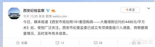 有知情者爆料称,在距离西安大唐芙蓉园不足1000米的长庆坊二期,西安市规划局团购了191套房子,价格还不到周边商品房售价的一半,每平米只要4000多元。8月6日下午,官微西安纪检监察发布消息称,西安市纪委监委已成立专项调查组介入调查,将根据调查情况,及时发布有关消息。