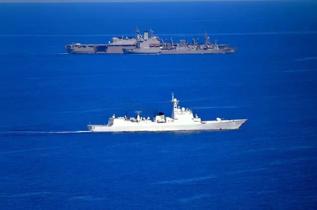 从美国海军发布的照片来看,中国海军"兰州"号导弹驱逐舰为维护中方主权,在南海相关海域迫近美舰,以精准操作斜切其航线,迫使其改变航线并驶离。