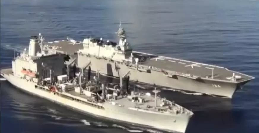 作为日本政府提出的"自由与开放的印度太平洋战略"构想中一环,日本海上自卫队"加贺"号直升机航母和村雨级护卫舰"电"号自今年8月下旬开始经由南海,在印度洋之间进行了为期2个月的航行。在此次航行期间,"加贺"号航母上带有日本NHK电视台的摄制组。10月25日,摄制组拍摄到了美军补给舰在南海海域为日方舰艇进行燃油补给的情况。
