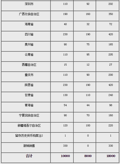 2.庆祝改革开放40周年双色铜合金纪念币分配数量
