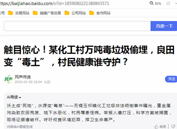近日,一封来自江苏省无锡市惠山区玉祁镇的实名举报信,揭开了一起可能危及当地生态环境与居民生命健康的严重事件。举报人张先生痛心疾首地指出,其所在镇下辖的南联村,作为化工产业集中地,产生了数量惊人的化工垃圾。然而,部分管理人员为一己私利,竟将这些含有汞、镉、铅等重金属及多种持久性有机污染物的“毒垃圾”,肆意倾倒在邻近的玉蓉村废塘内,仅以薄土草草掩盖,酿成难以估量的环境灾难。